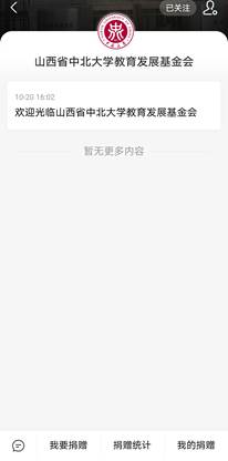 点击关注进入公众号页面右下角后点击【接受通道——微信】,进入捐赠系统【首页】(如下图)
