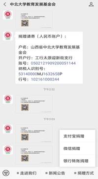 打开支付宝搜索【山西省中北大学教育发展基金会】生活服务号或使用支付宝扫描二维码