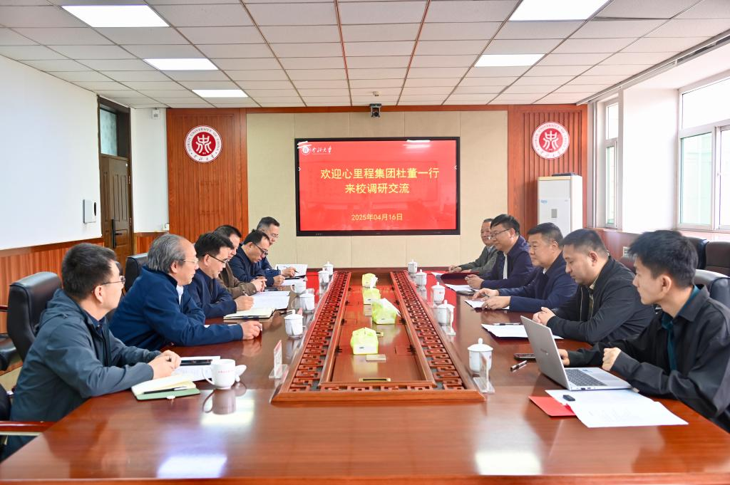 4月16日,心里程控股集团董事、副董事长杜登高率队来校调研交流。双方于德怀楼第四会议室进行座谈。副校长尹建平出席。学校教育发展基金会理事长薛实军参加。国内交流合作部负责人主持会议。