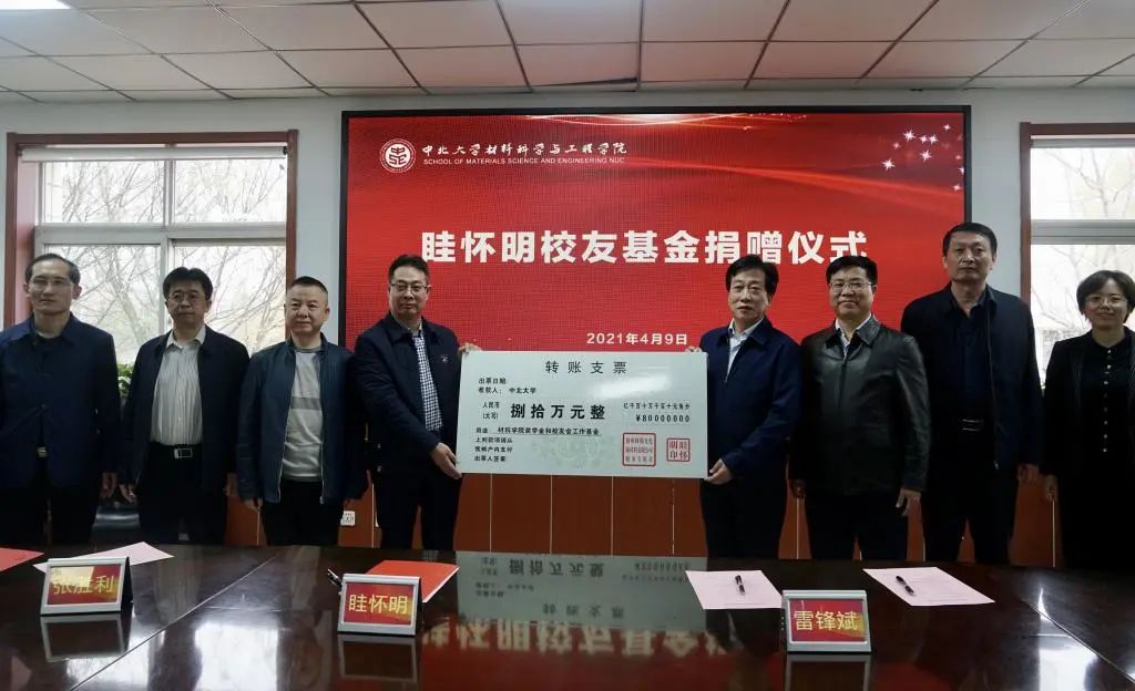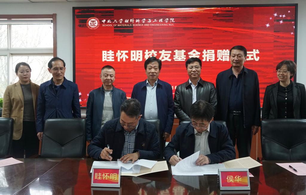 捐赠仪式上,校党委副书记雷锋斌代表学校接受了捐赠,眭怀明校友与材料科学与工程学院院长侯华代表双方签署捐赠协议,随后眭怀明表达了对昔年母校培育的感恩之意和此次重回母校的喜悦之情,介绍了公司的基本情况,同时向所有材料学子发出邀请,表明公司的大门永远为中北学子敞开。