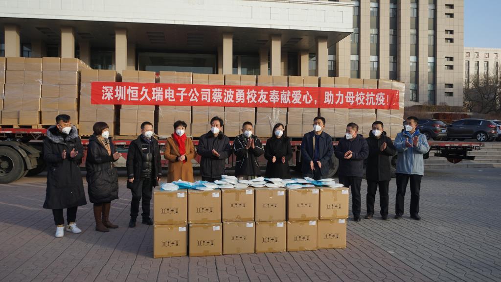 廖华平表示,蔡波勇校友在得知山西新冠疫情有所反复的同时,第一时间就组织人力物力生产50万只KN95口罩,即刻从广东历时两昼夜发运至太原。以实际行动支持学校的抗疫工作,借以感谢母校的栽培之恩以及对母校老师同学的关怀的心意。